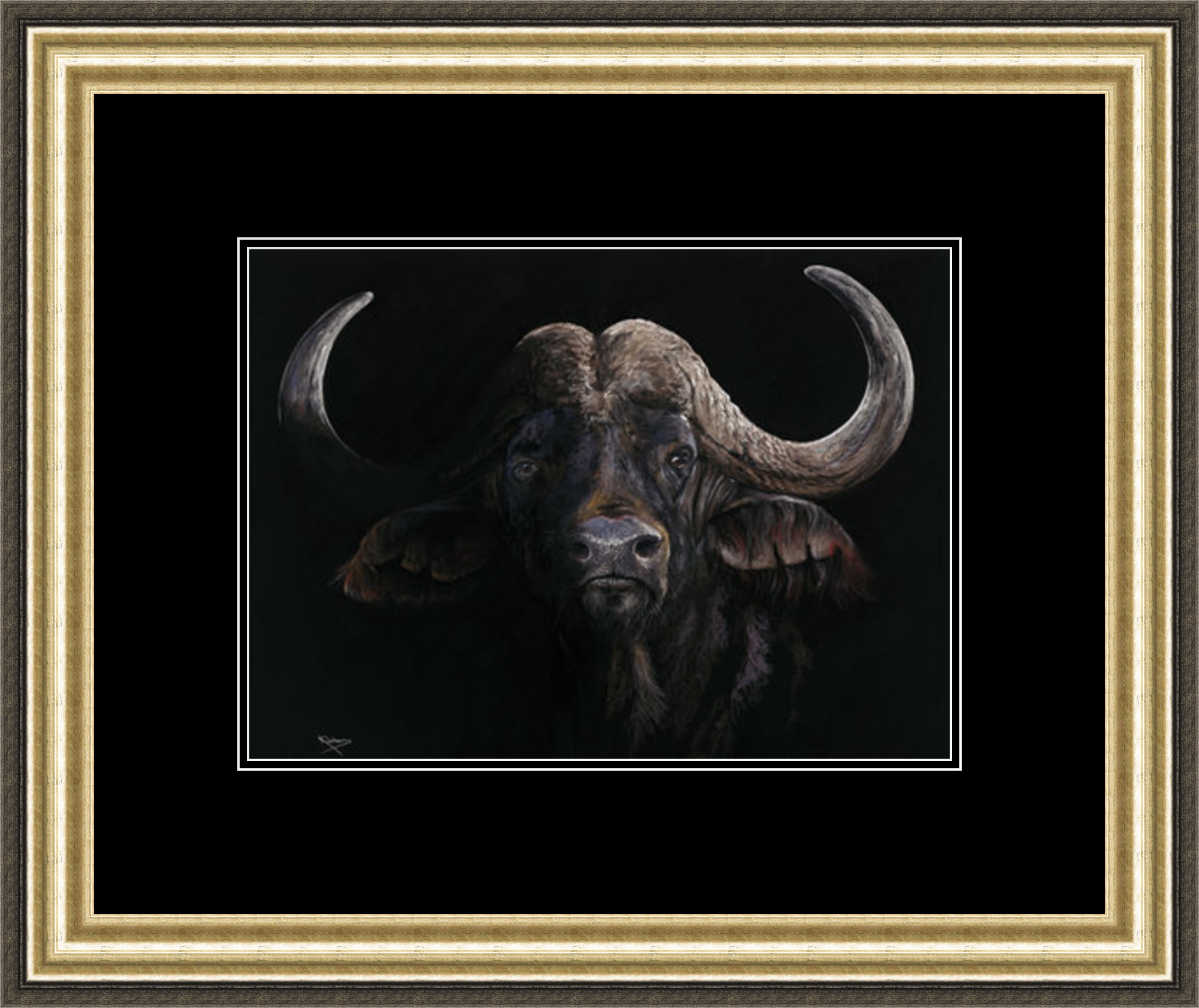 Artist: Kay Johns -Cape Buffalo - Black background