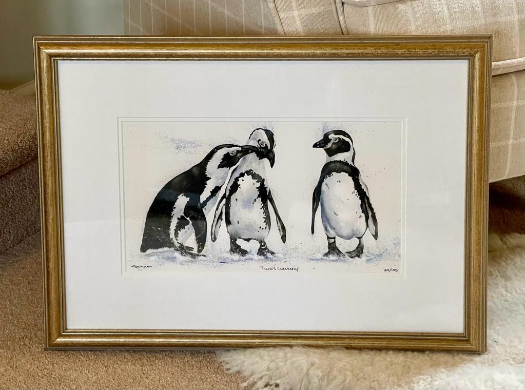 Additional info: Hand embellished Penguin bird artwork by Kay Johns